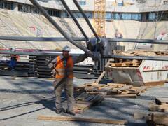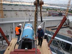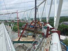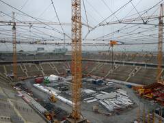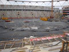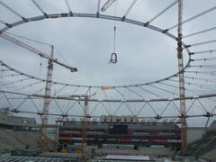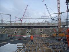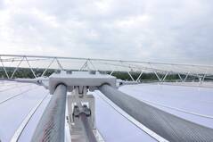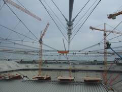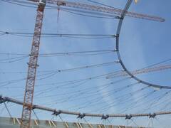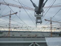 The stadium has been extended to 30,000 spectator places and received a new roof. We spanned 500 tons worth of ropes with diameters of 70 to 90 mm into a roof structure that carries the new roof elements.