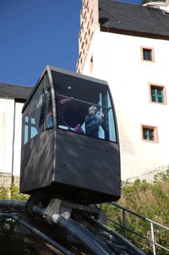 This facility was taken into operation in October 2010. It was built by the town of Schwarzenberg in the Erzgebirge The elevator accesses the old town on the castle hill.