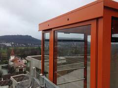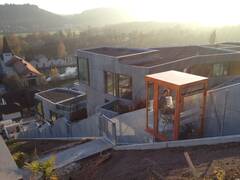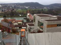 The system accesses the new apartment superstructure Hungerberg in Aarau with 8 residential units. With construction of the new inclined elevator, 3 existing residential buildings on the right side can be accessed as well.