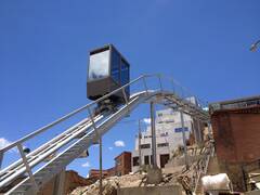 The largest urban aerial tramway network is currently under construction in La Paz Bolivia. We were able to realize a new 20-person inclined elevator as a feeder for an aerial tramway station.
