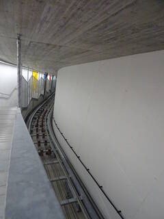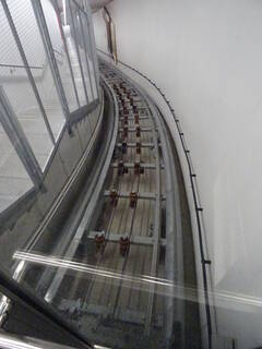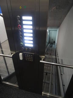 6 luxurious houses have been built on the former Chantarella-Bahn rail route in St. Moritz. Residents can come from the three-storey garage to the level of their access corridor with eight stations. The inclined elevator travels underground and not in a straight line to the houses over a distance of around 150m, handling bends along the way. That is why the elevator requires two cables and a compensating mechanism in order to handle the different lengthening, which is a tremendous innovation in the construction of inclined elevators.