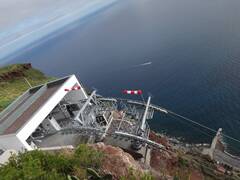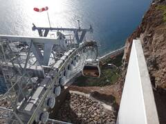 We were able to implement another compact aerial tramway for 8 in an impressive location on the island of Madeira. The system accesses the excursion destination Fajà dos Padres, passing a roughly 300 m high rock face right by the coast.