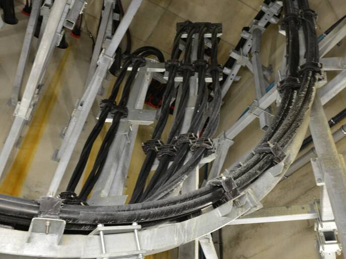 Da das Kabel in Endlage in die Kanäle und Tunnels eingezogen wird und nur noch befestigt werden muss, sparen Sie viel Zeit und Personal. Nach dem Einzug wird nur noch der Durchhang eingestellt und die Klemmbriden zugeschraubt.