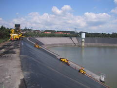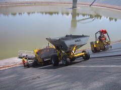 Für Belagsarbeiten an Wasserspeicherbecken und Böschungen hat die WALO Bertschinger AG die tonnenschweren Maschinen mit viel Seilwinden von uns, der Inauen-Schätti AG gesichert.