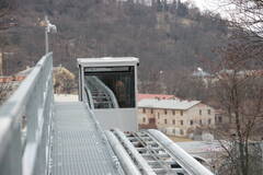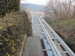Die Hotelgäste, Besucher und Anwohner des NH-Hotels in Prag, vorher Mövenpick, werden neu mit einer Comfortanlage für 12 Personen der Inauen-Schätti AG transportiert. Dabei wurde die bisherige Anlage adaptiert, also auf der bestehenden eine neue Fahrbahn gebaut. Sämtliche Stützen und Betonfundamente wurden saniert. Die 152m lange Fahrbahn ist im Gefälle sehr unterschiedlich und verbindet zwei Hotelkomplexe. Im unteren Teil weist sie Neigungen bis zu 31 Grad auf, oben führt sie eben in die unterirdische Station. Gesamthaft werden 50 Höhenmeter überwunden. Mit dem hydraulischen Niveauausgleich werden die Kabine und damit die Fahrgäste immer in der Horizontalen gehalten. Aber auch die Fahrbahn fällt durch eine besondere Bogenführung auf. Die Stationen sind unter Dach gebaut, der Antrieb im Tal wurde mit einer pragmatischen Lösung an die Begebenheiten angepasst. Die bestehenden Spannwagen wurden übernommen und neue Spanngewichte eingesetzt.