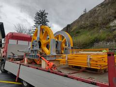 Im April 2023 startete der Umbau bei welchem die Antriebsgruppen der Pendelbahn, bestehend aus Getriebe, Bremsen, Bremsaggregat, Notantrieb, Antriebsscheibe und Gegenscheibe durch eine zeitgemässe Ausrüstung mit sparsamem Stromverbrauch ersetzt werden. Unser dreiköpfiges Montageteam konnte den Umbau in sportlichen fünf Wochen umsetzen, damit die Bahn der Öffentlichkeit wieder zur Verfügung steht. Nach Abnahme Betriebsbewilligung durch das BAV konnte die Pendelbahn am 17.05.2023 wieder den Betrieb aufnehmen.