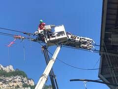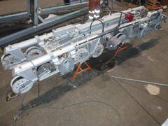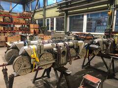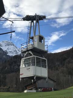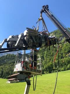 Die komplette Ertüchtigung des Laufwerks der Kraftwerkseilbahn Netstal-Löntsch erfolgte im Sommer 2022 in unserem Werk in Schwanden. Neben dem Korrosionsschutz und der Überprüfung der Schweissnähte haben wir auch zwei Vergussköpfe am Laufwerk erneuert. Eine Besonderheit am Laufwerk ist die Pendeldämpfung, die aus zwei Zylindern besteht. Die 1972 errichtete einspurige Pendelbahn zum Wasserschloss des Kraftwerks Löntsch stammt von Mathias Streiff, dem Vorgänger unserer Firma. Die Strecke der Seilbahn ist 575 m lang und einspurig. An das Gehänge kann sowohl Material als auch eine 30 Personen fassende Kabine angehängt werden.