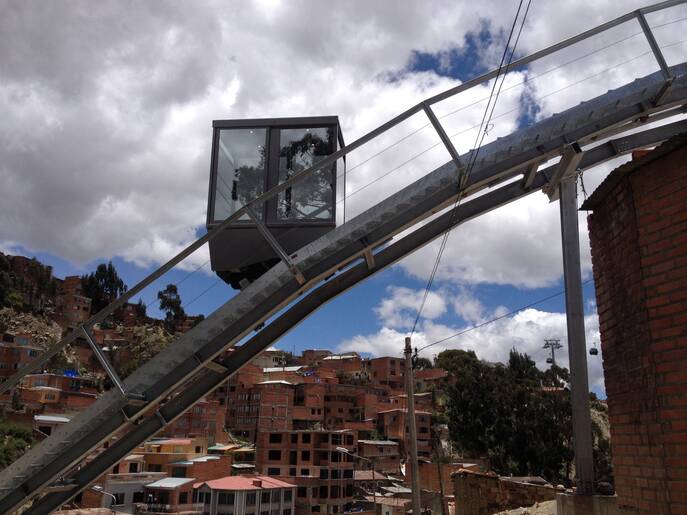 Our classical standard design offers plenty of space for four to sixteen persons and is accessible for wheelchairs. The automatic cabin door drive reduces the already-simple operation to a minimum. The station door offers optimal safety thanks to automatic latching and can only be opened when the cabin is in the station. Design and function: Windows of shaded acrylic glass, slip-proof aluminum bulb plate on the cabin floor and hot-dip-galvanized steel as basic material combine a robust and weather-independent build with a beautiful design.