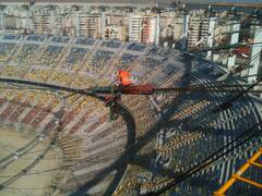 A new national stadium was built in Romania's capital Bucharest in mid-2011. It was where the Euro League Finale was held in 2012. The new stadium offers space for an audience of 55,000 and is equipped with a folding tent roof. The roof comprises of a light-permeable membrane and has a size of 9,000 m2.