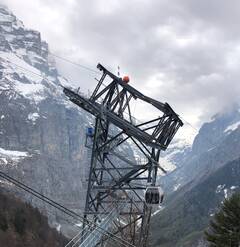 The tramway covers an altitude difference of 1053m whilst the red and silver cabins head almost two kilometres skywards. It rises up to 214 metres above the ground. Two towers that are part of the construction tramway are reused, and a third tower is being built before the mountain station.