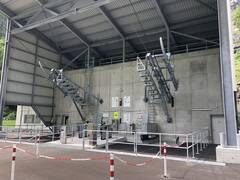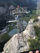 The intermediate exit on tower 1, which serves the power station and alpine summering, represented a particular challenge. In this case, the intermediate exit is fully automatic and hydraulic. Electricity has to be additionally supplied from the mountain station.