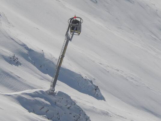 Il suffit en effet de le poser un socle doté d’un anneau spécial sur la montagne. La caisse de projection est chargée dans la vallée, le système S-LOAD facilitant grandement le processus. Ensuite, le couplage automatique « Auto-Loc » du LM32 est introduit dans l’anneau par hélicoptère. Le pilote d’hélicoptère ne doit pas l’installer dans une direction ou une position particulière, ce qui simplifie grandement le processus. Les cellules photovoltaïques étant disposées sur tout le pourtour de l’Avalanche Trigger LM32, l’orientation par rapport à l’anneau n’a en effet pas d’importance.